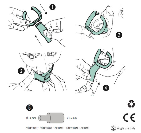 Materiaal Oral BioFilter: Medical grade plastic, recyclebaar. Single Use, voor verpakking gedesinfecteerd en verpakt per stuk. Niet steriliseerbaar. Oral BioFilter wordt bevestigd aan de grote afzuiger (HVE- Hoog Volume Evacuatie systeem).