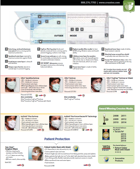 091886 CROSSTEX MONDMASKERS ULTRA LINE SECURE FIT MET ELASTIEK BLAUW (50st) ASTM3