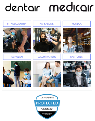 DentAir/MedicAir biedt professionals een unieke oplossing voor de sterilisatie en filtratie van lucht, om de luchtkwaliteit te verbeteren en de verspreiding van aerosolen (en de meegevoerde virussen en bacteriën) te verminderen.