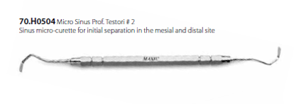 Developed in collaboration with Prof. Tiziano Testori, this set of micro-curettes allows a gentle separation of sinus tissues when access to the antral cavity is limited in size or to manage mucosa separation, in the presence of bone septum, too.